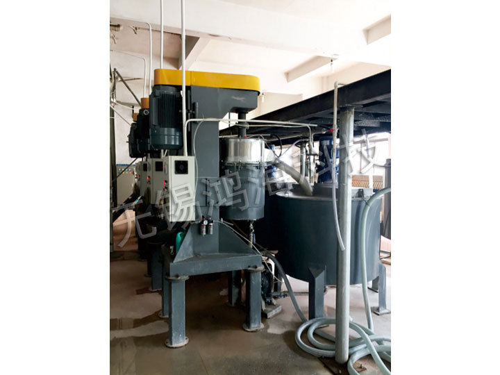 此機組的特點是研磨后可獲得窄的粒度分布。磨介和研磨室的投資較少,但能處理大量物料。料漿可連續監測,其他配方可在研磨過程中隨時加入混合缸中,對于較敏感的成分可在研磨結束之前加入,因為料漿在研磨室中停留時間較短,大部分時間在混合缸中,從而有效的控制其料漿溫度。