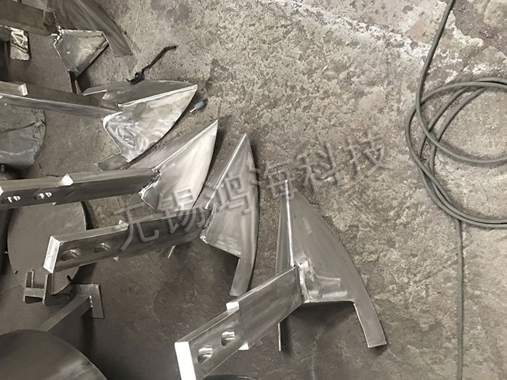 飛刀組由多把飛刀組成,通過電機直接驅動,安裝在筒體側面,防止粉塵進入軸承,飛刀軸采用多道密封結構;