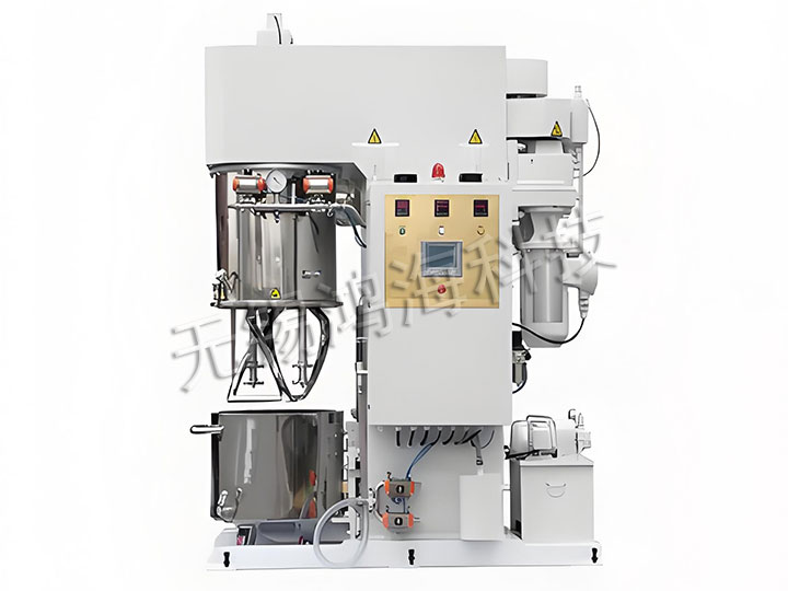 該設備采用罐體內壁精加工與自動拋光工藝,配備行星架上的活動刮刀,可完全刮除殘留物料。攪拌槳通過公轉與自轉的復合運動實現物料三維流動混合,支持變頻調速以適應不同黏度需求,可根據不同生產工藝及物料特點選擇多槳葉式攪拌槳。